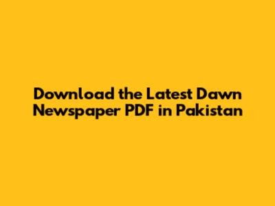 Download Dawn Newspaper PDF - Pakistan's Latest Edition