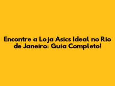 Encontre A Loja Asics Ideal No Rio De Janeiro: Guia Completo!