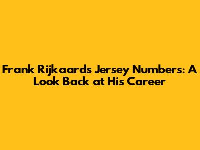 Frank Rijkaard's Jersey Numbers: A Look Back At His Career
