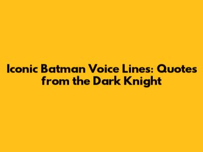 So, there you have it, guys! A deep dive into the iconic voice lines of Batman. From the comics to the movies, and the games, the Dark Knight's quotes have captivated us for decades. They're more than just words; they're a symbol of justice, resilience, and the unwavering fight against evil. As Batman continues to evolve, we can be sure that his voice will remain a powerful and essential part of his character. What are your favorite Batman voice lines? Let us know in the comments below! Keep being awesome, Bat-fans!"
