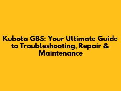 Kubota GBS: Troubleshooting, Repair & Maintenance Guide