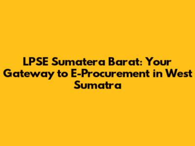 LPSE Sumatera Barat: Your Guide To E-Procurement!