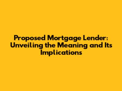 Proposed Mortgage Lender: Decoding The Meaning & Impact