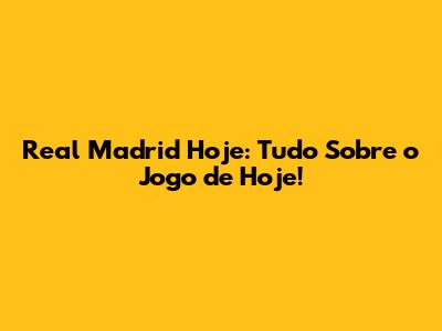 Real Madrid Hoje: Tudo Sobre O Jogo De Hoje!