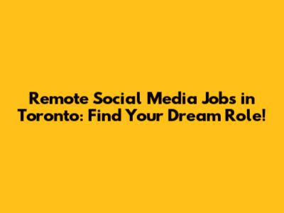 Remote Social Media Jobs In Toronto: Find Your Dream Role!