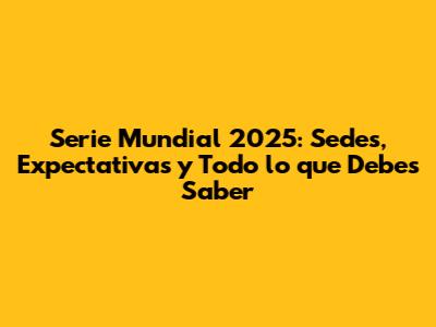 Serie Mundial 2025: Sedes, Expectativas Y Todo Lo Que Debes Saber