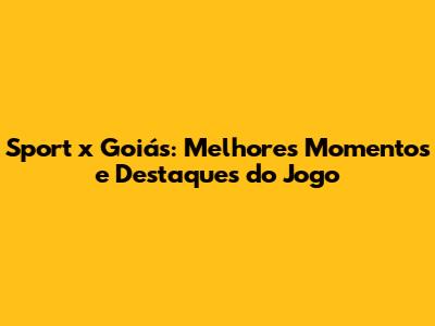 Sport X Goiás: Melhores Momentos E Destaques Do Jogo
