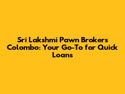 Hey guys! Let's talk about something super important but often overlooked: where to turn when you need some quick cash in Colombo. We've all been there, right? Unexpected bills pop up, emergencies happen, and sometimes, you just need a financial bridge to get you to your next payday. That's where pawn brokers come in, and specifically, Sri Lakshmi Pawn Brokers Colombo has been a name that many in the city trust. They're not just about pawning your valuables; they're about providing a fast, reliable, and discreet solution to your immediate financial needs. So, if you're in Colombo and find yourself in a pinch, understanding what Sri Lakshmi Pawn Brokers offers could be a lifesaver. We'll dive deep into their services, what makes them stand out, and how you can make the most of what they have to offer. It's all about making informed decisions, and we're here to guide you through it.