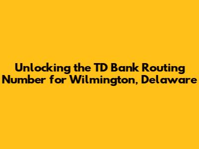 TD Bank Routing Number Wilmington DE