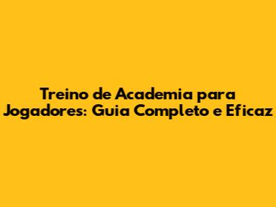 Treino De Academia Para Jogadores: Guia Completo E Eficaz