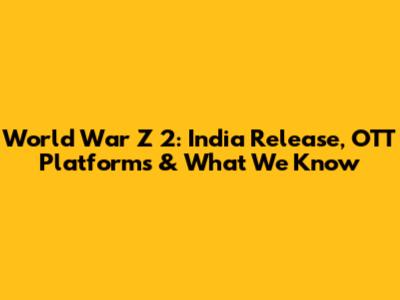 World War Z 2: India Release, OTT Platforms & What We Know